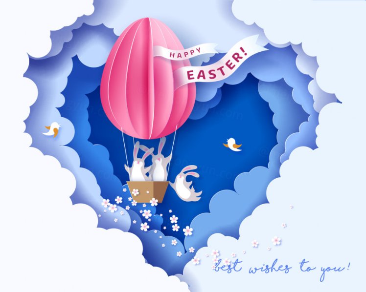 图穷联素材库 » 剪纸工艺抽象背景EPS矢量复活节贺卡海报素材蓝色天空背景下兔子