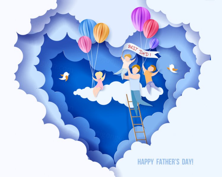 图穷联素材库 » 男人和孩子彩色气球剪纸工艺抽象背景EPS矢量父亲节贺卡海报素材