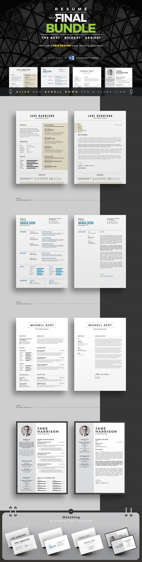 图穷联素材库 » 高逼格多职业通用简历模板合集包 Resume/CV Full Final Bundle