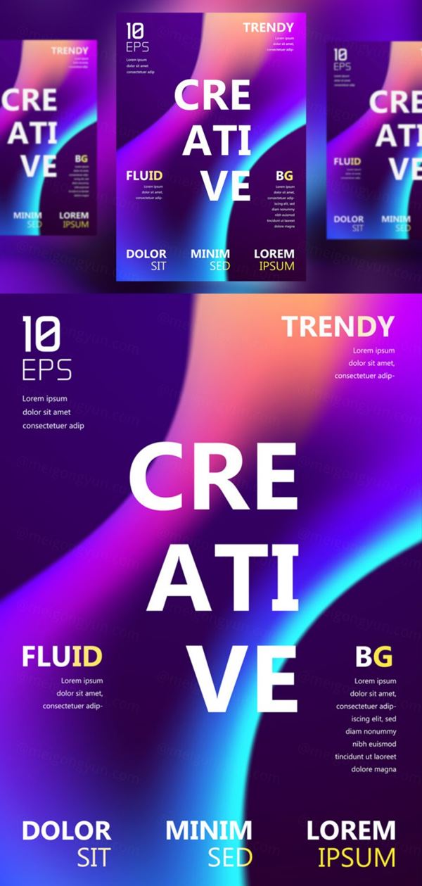 图穷联素材库 » 现代抽象液体渐变音乐节A4广告海报设计模板 Trendy Vector Fluid Gradient A4