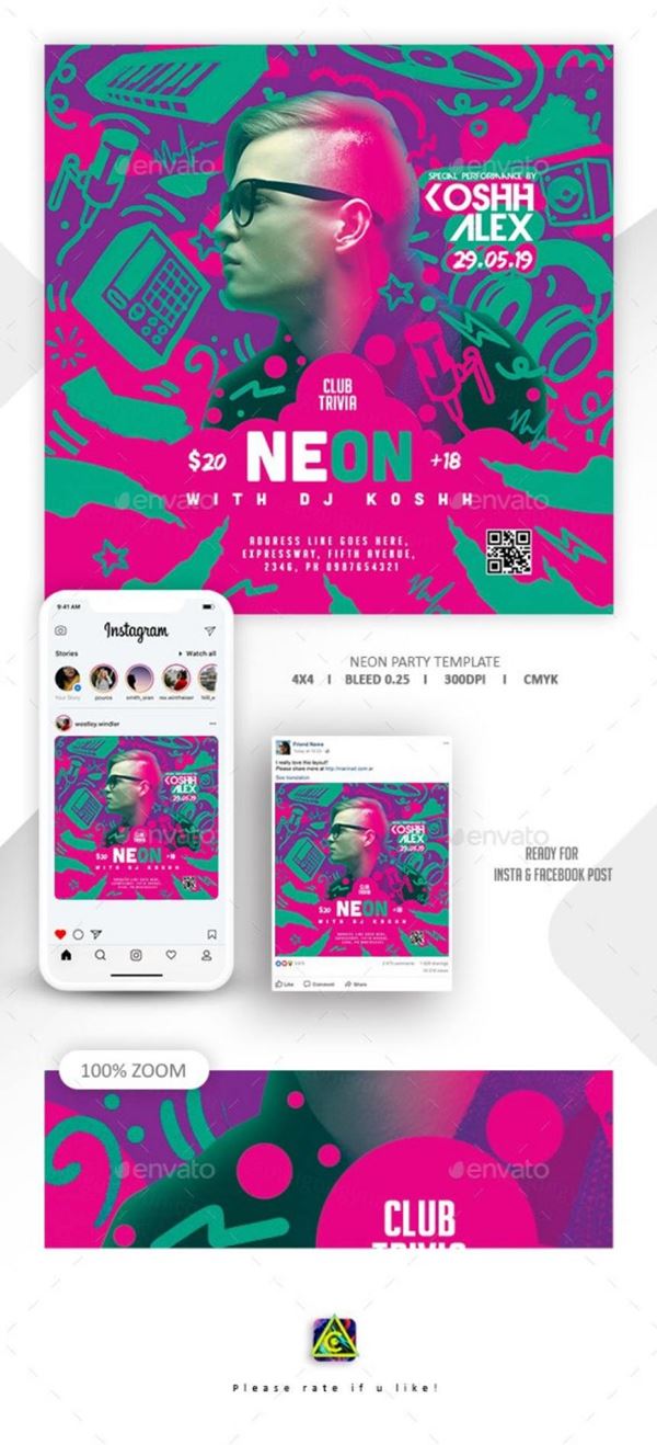 图穷联素材库 » 霓虹灯活动派对传单PSD模板Neon Flyer Template