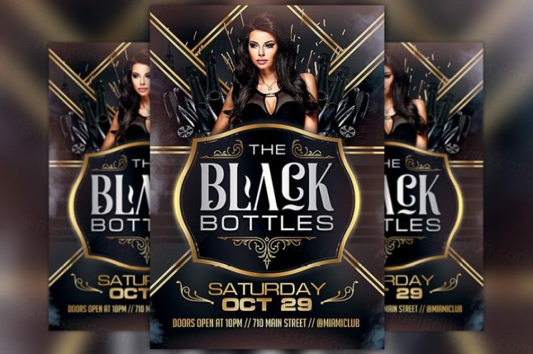 图穷联素材库 » 时尚人物派对传单模板 Black Bottles Party Flyer Template