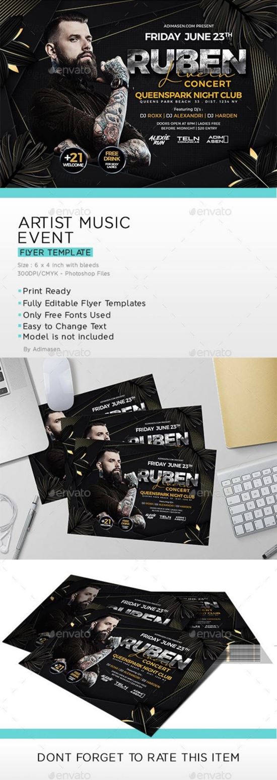 图穷联素材库 » 艺术家音乐活动传单设计PSD模板Artist Music Event Flyer