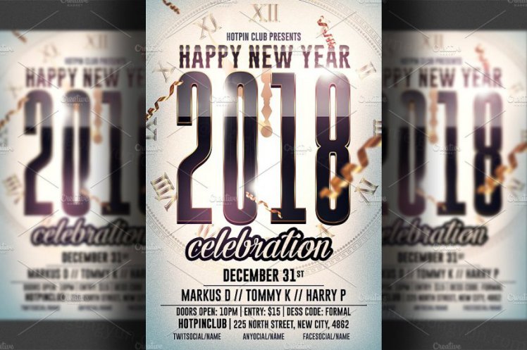 图穷联素材库 » 新年庆祝海报设计模板 New Year Psd Flyer Template