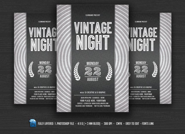 图穷联素材库 » 经典黑白海报设计 Vintage Night Flyer