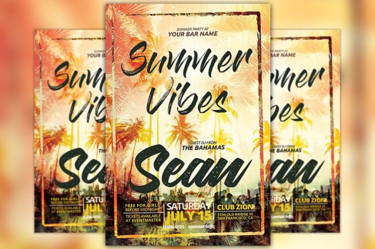 夏季元素活动海报设计模板 Summer Vibes Flyer Template