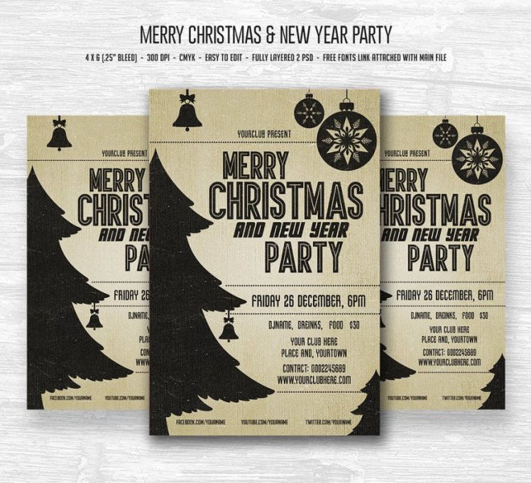 图穷联素材库 » 圣诞节和新年派对海报设计模板 Christmas and New Year Party