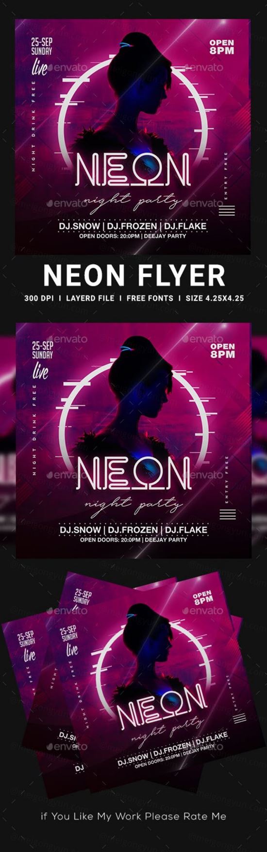 图穷联素材库 » 霓虹灯电子音乐派对传单设计模板