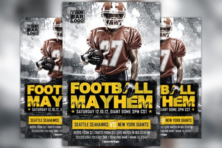 图穷联素材库 » 美式足球比赛海报设计模板 Football Mayhem Flyer Template