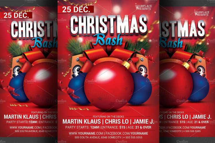 图穷联素材库 » 圣诞狂欢派对海报设计模板 Christmas Bash Party Flyer