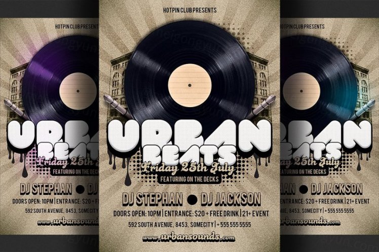 图穷联素材库 » 怀旧音乐海报设计模板 Hip Hop Party Flyer Template
