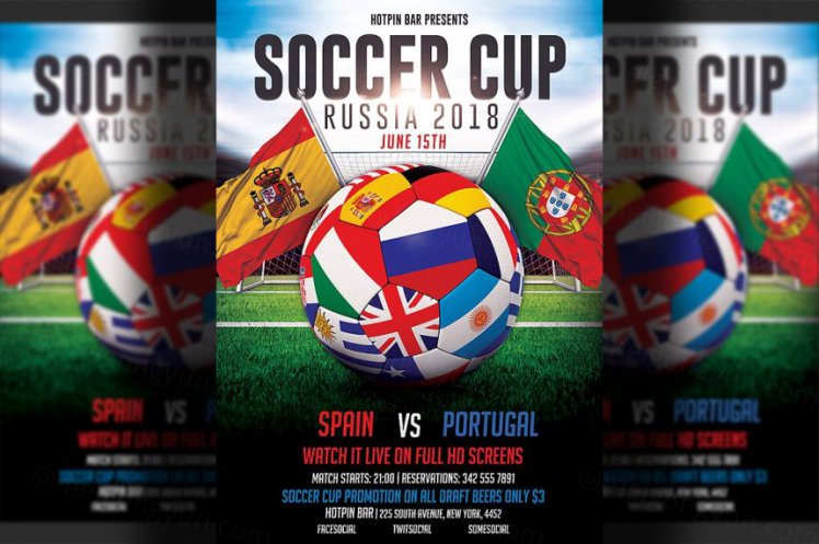图穷联素材库 » 世界杯足球海报设计模板 Football World Cup Flyer