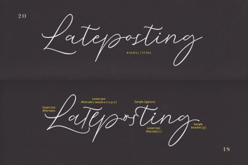 带有斜盘字母,连字,大写和小写的替代品,您可以完美地组合每个字母。任何具有opentype功能支持的程序也易于使用。