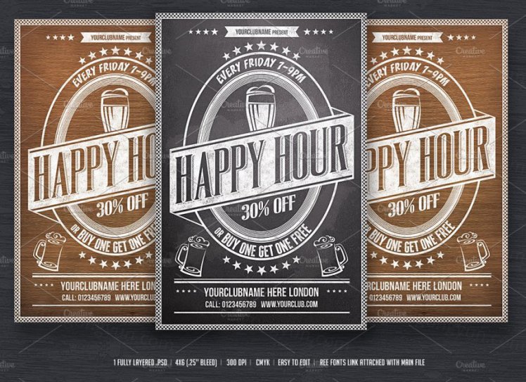 欢乐时光海报模版 Happy Hour Flyer template