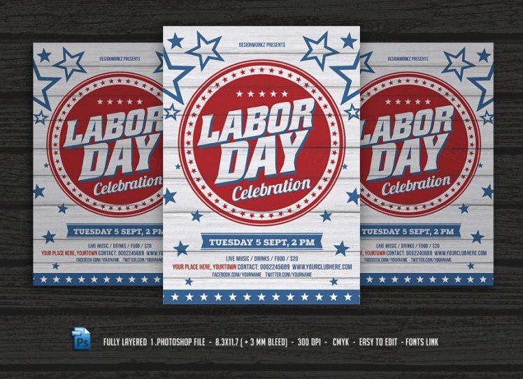 图穷联素材库 » 美式劳动节海报模版 Labor Day Flyer