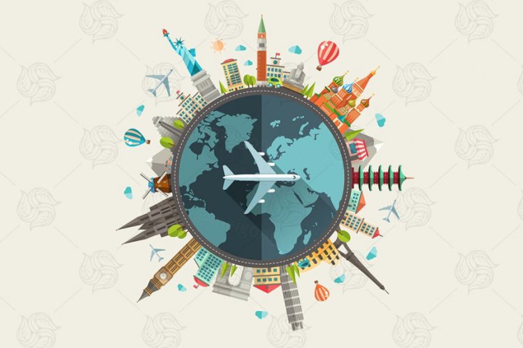图穷联素材库 » 旅行世界标志性建筑极坐标工具风格的banner海报