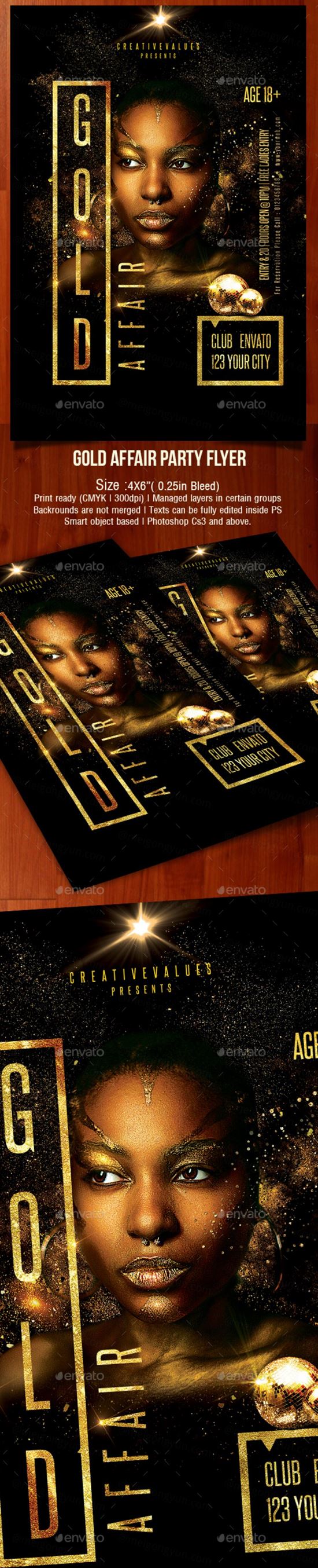金光灿烂的聚会活动海报模板下载 Gold Affair Party Flyer