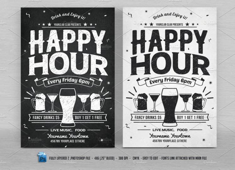 图穷联素材库 » 欢乐主题的酒吧海报模板 Happy Hour Flyers
