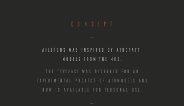 Ailerons was inspired by aircraft models from the 40s. The typeface was designed for an experimental project of airmodels and now is available for personal use.