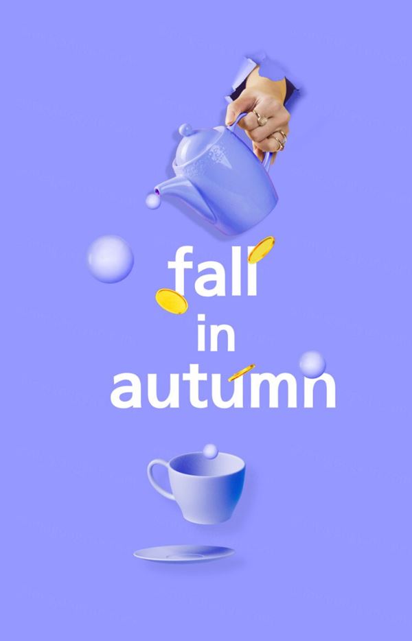 图穷联素材库 » 简约浅紫蓝背景秋天主题海报psd素材