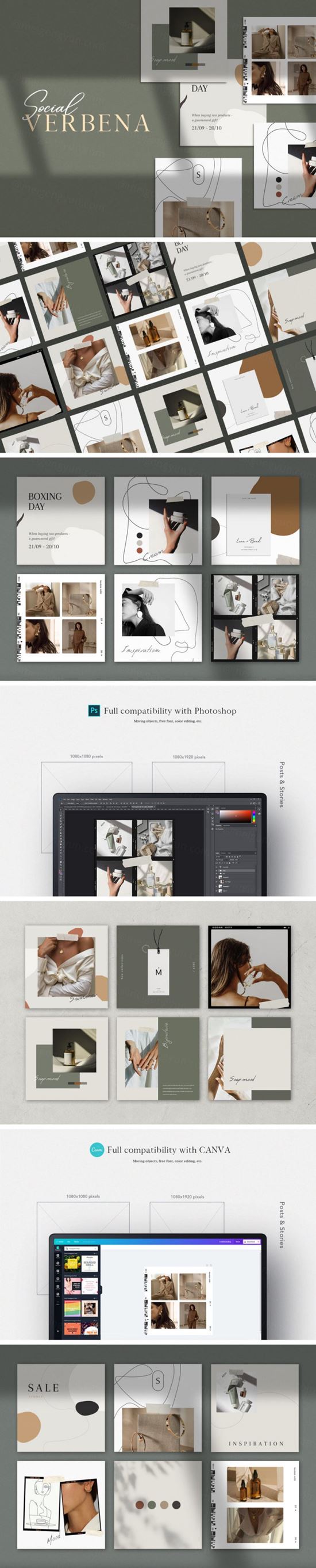 图穷联素材库 » 办公展示模板 社交媒体模板 自媒体模板 模板马鞭草Instagram模板