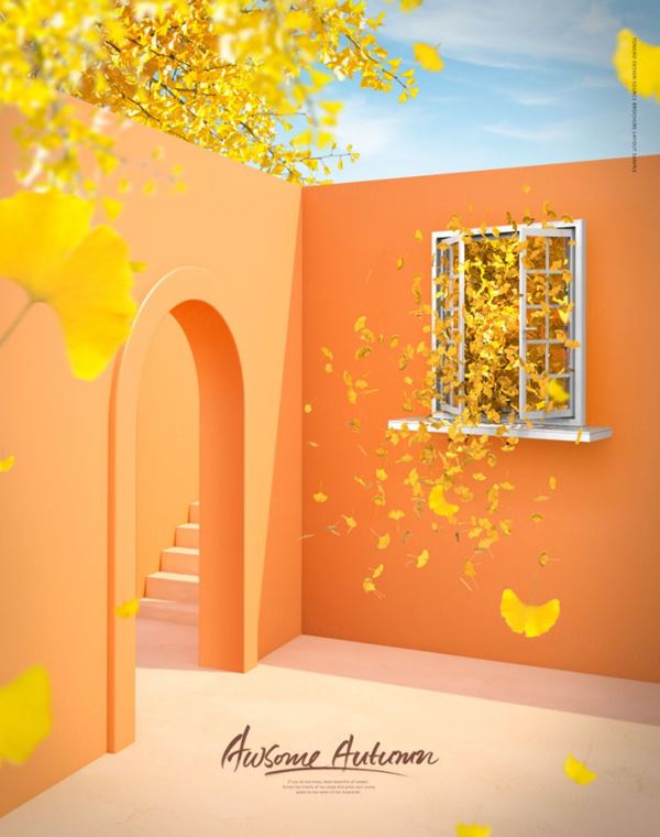 图穷联素材库 » 金秋落叶秋天主题海报图片素材