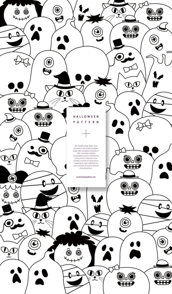 图穷联素材库 » 万圣节可爱的黑白小怪物背景图案psd素材