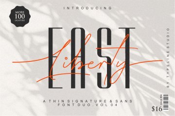 介绍我们最新的字体二人组,名称为East liberty thin signature和sans serif,这是一个现代脚本签名和无衬线精简版之间的二重奏,非常适合创建徽标,品牌,T恤,摄影水印,美容产品,杂志封面,杂志内容,报价等。