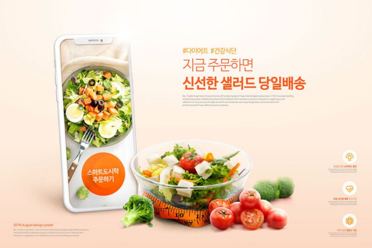 图穷联素材库 » 绿色健康食品蔬果沙拉订购配送海报psd模板