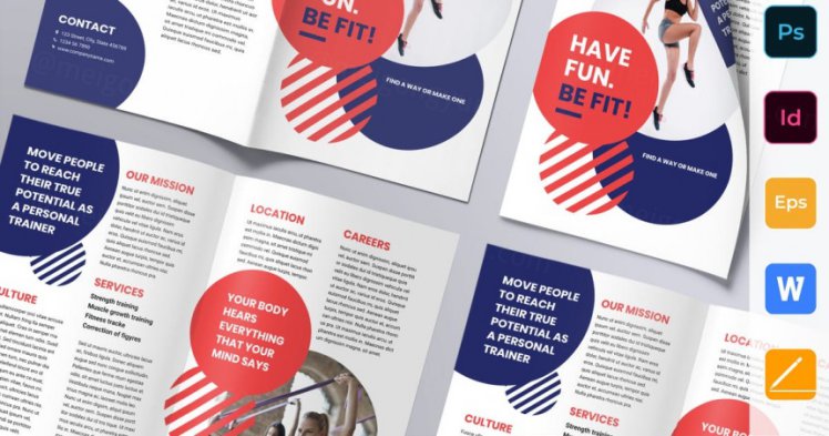 图穷联素材库 » 俱乐部广告双折页传单设计模板 Fitness Trainer Coach