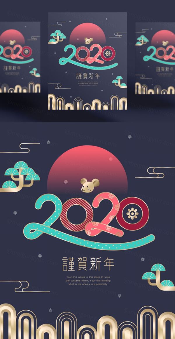 图穷联素材库 » 东方传统的年渐变色鼠年海报