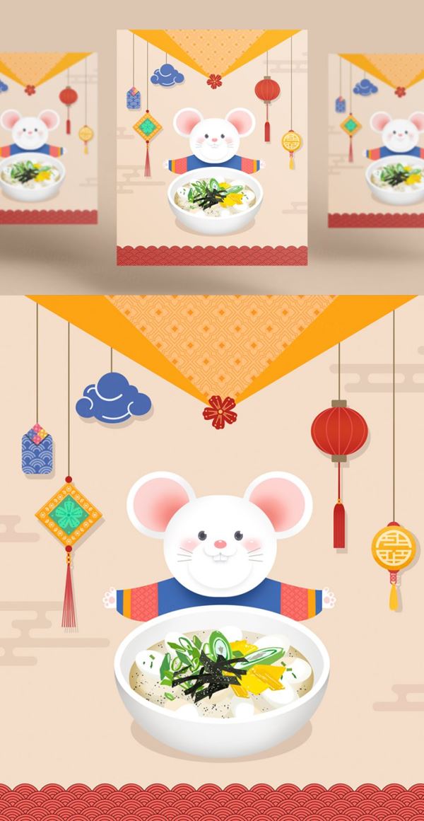 图穷联素材库 » 春节新年韩式年卡通可爱吃汤圆的鼠年海报模板