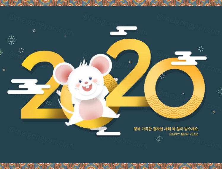图穷联素材库 » 春节新年韩式年字体设计卡通可爱风格鼠年海报模板