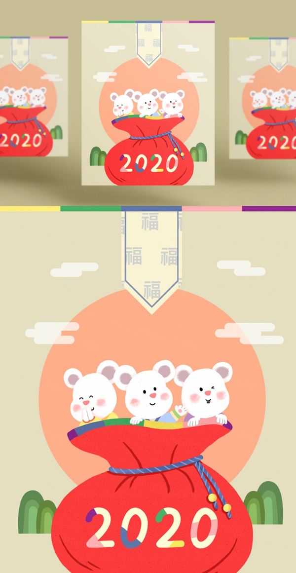 大福袋的韩式年卡通可爱风格鼠年海报模板
