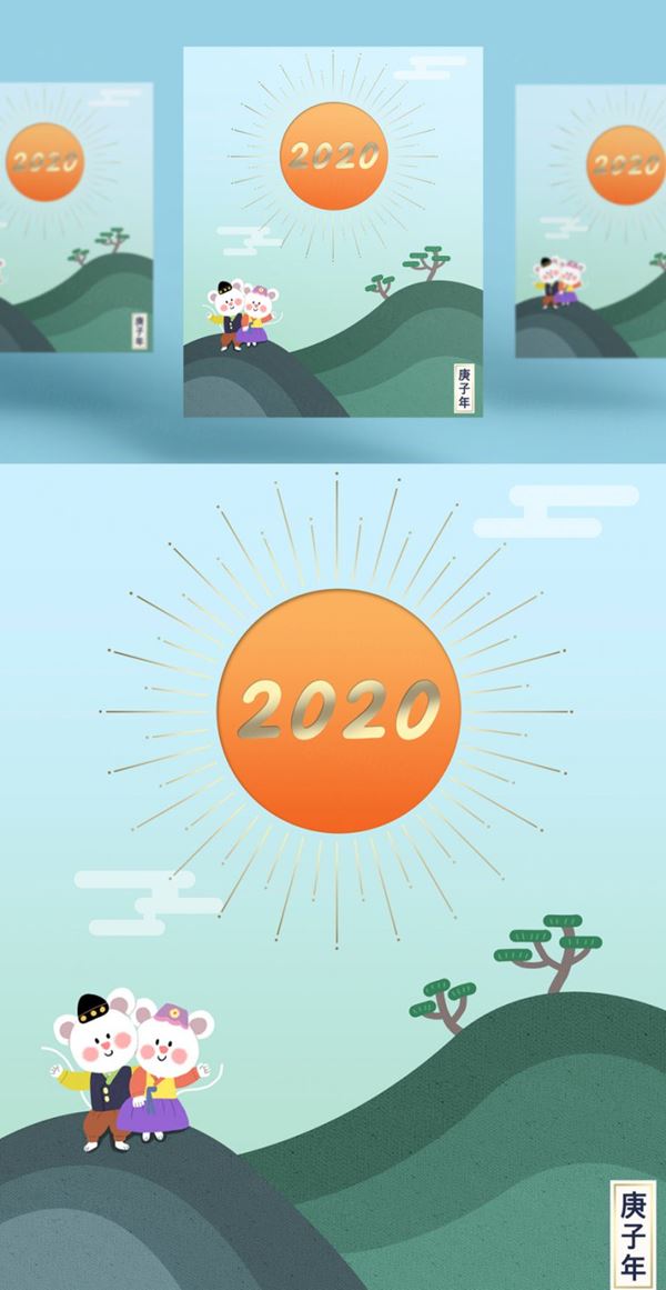 图穷联素材库 » 春节新年韩式旅游风年卡通可爱风格鼠年海报模板