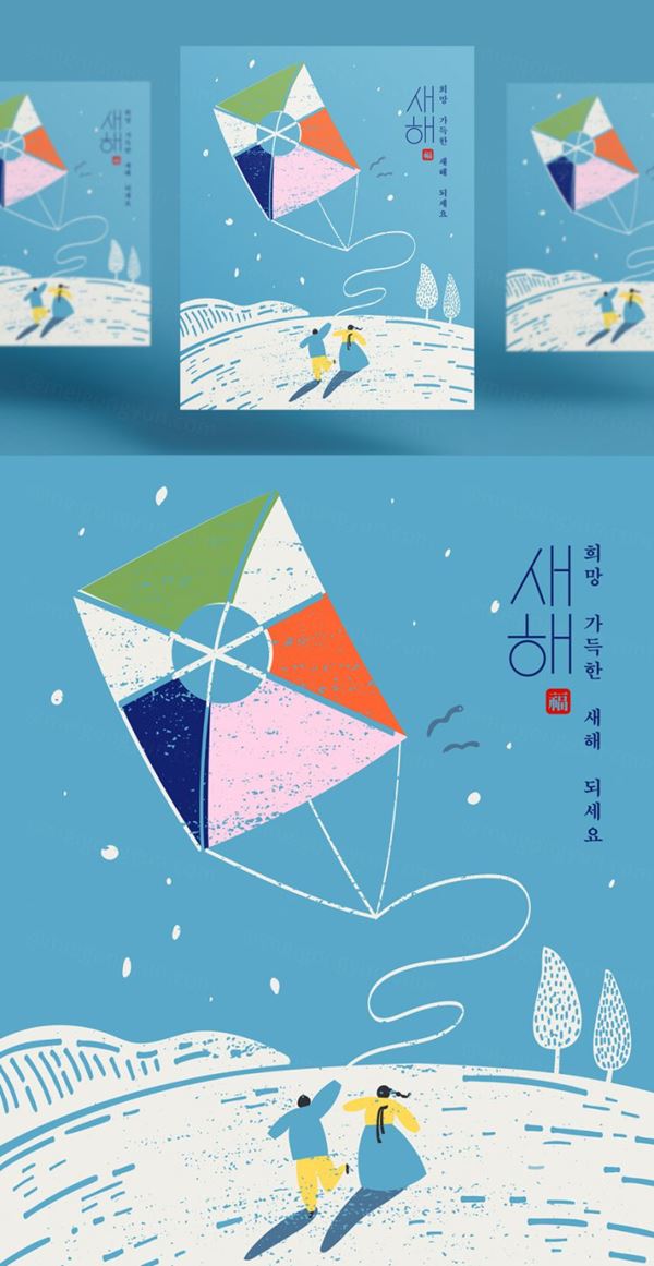 图穷联素材库 » 春节新年韩式年放风筝的鼠年海报模板