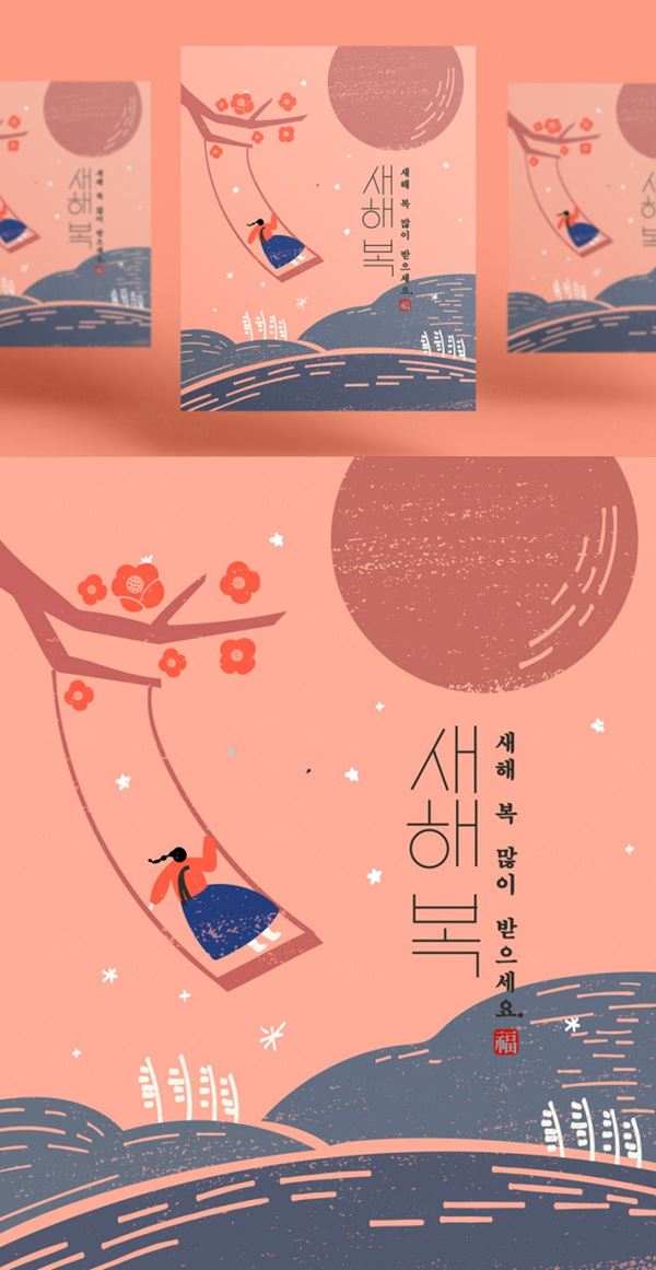图穷联素材库 » 春节新年韩式年荡秋千海报模板