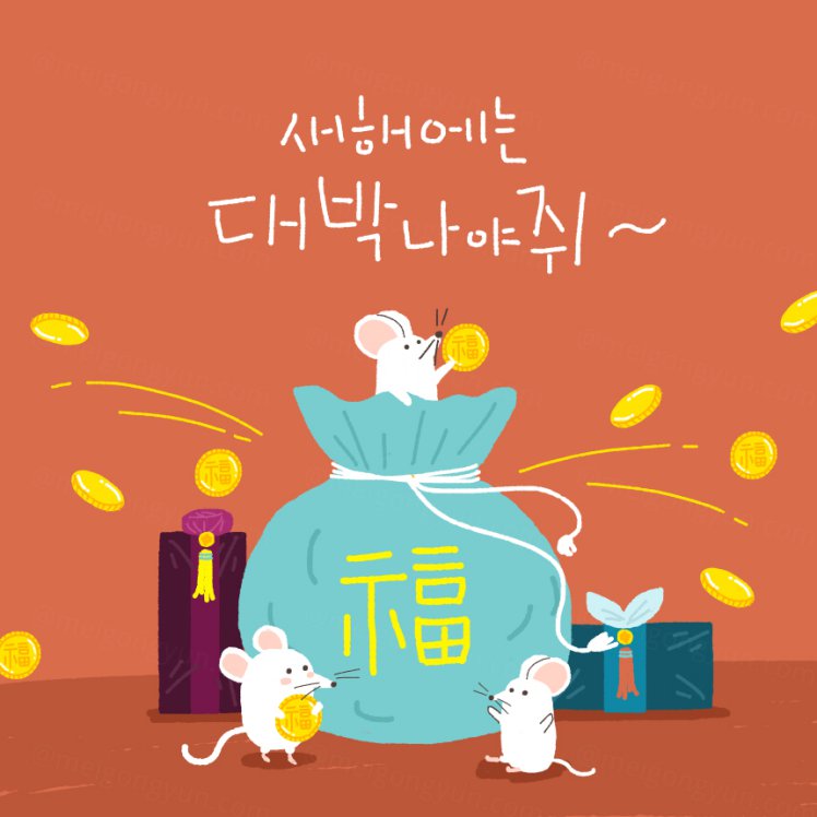 图穷联素材库 » 春节新年韩式年抱金币的鼠年海报模板
