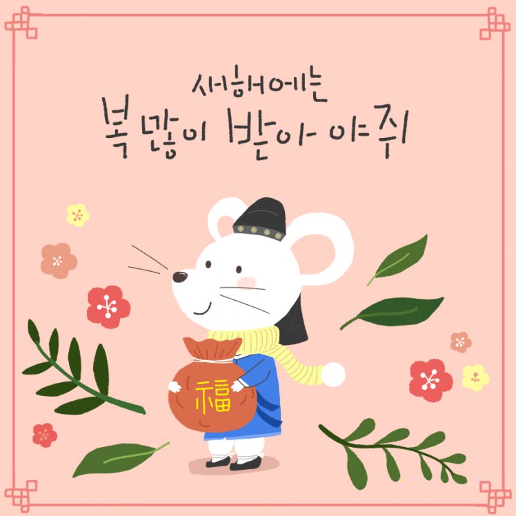 图穷联素材库 » 粉色韩式年卡通小清新风格鼠年海报模板