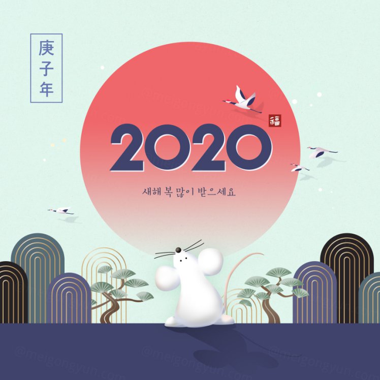 图穷联素材库 » 春节新年韩式年卡通可爱望月的鼠年海报模板
