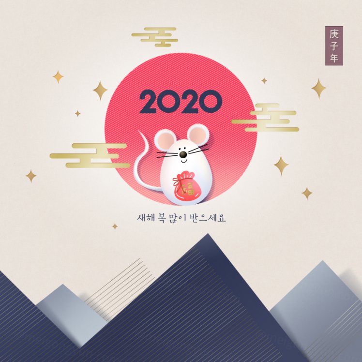 图穷联素材库 » 粉色春节新年韩式年卡通可爱风格鼠年海报模板