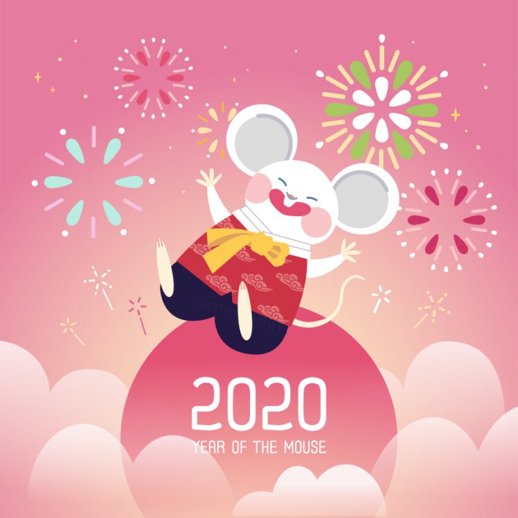 图穷联素材库 » 粉色烟花春节新年韩式年卡通可爱风格鼠年海报模板