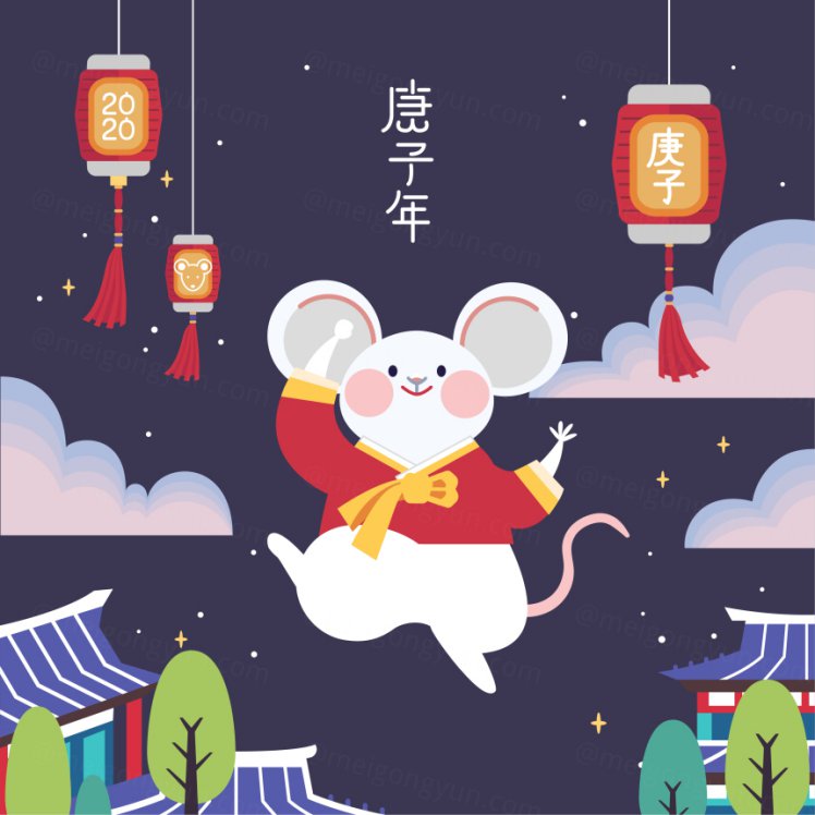 图穷联素材库 » 欢乐的春节新年韩式年卡通可爱风格鼠年生肖海报模板