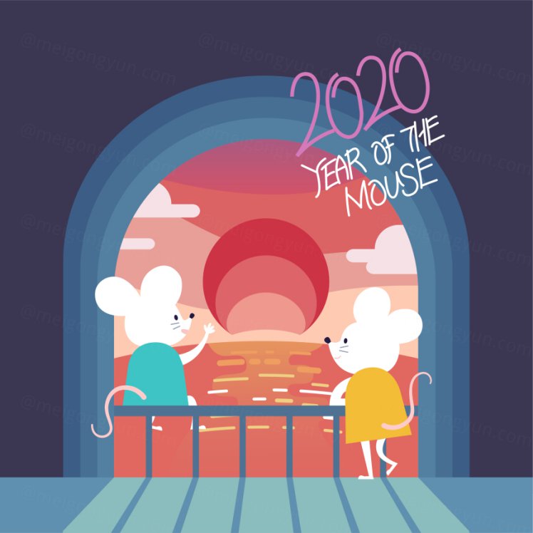 图穷联素材库 » 夕阳下的春节新年韩式年卡通可爱风格鼠年海报模板