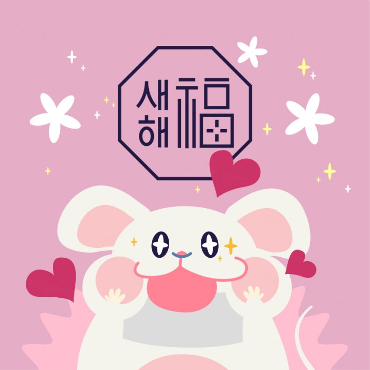 图穷联素材库 » 闪闪发光的粉色春节新年韩式年卡通可爱风格鼠年海报模板