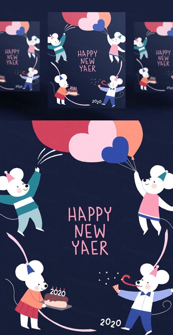 图穷联素材库 » 春节新年韩式年卡通可爱风格爱心气球鼠年海报模板