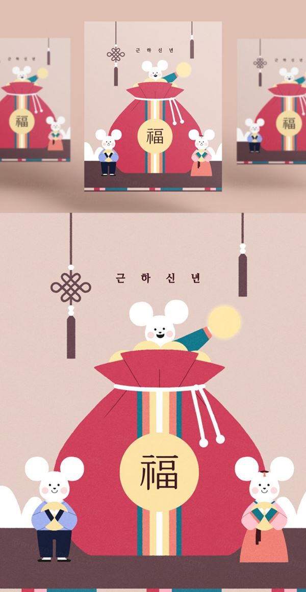 图穷联素材库 » 韩式年卡通可爱风格鼠年春节海报模板