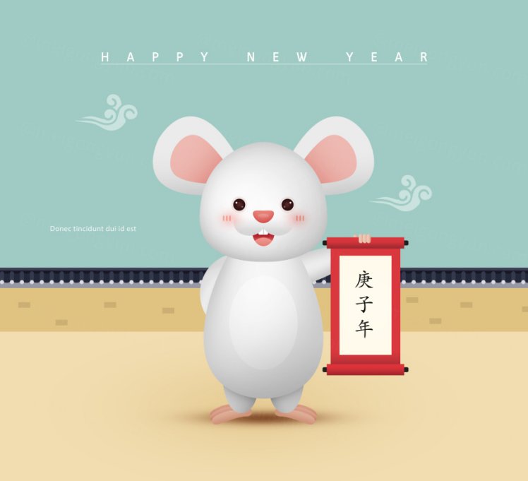 图穷联素材库 » 小清新韩式年卡通可爱风格鼠年横幅海报模板