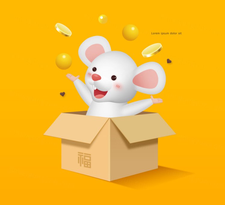 图穷联素材库 » 黄色幸运礼盒卡通可爱风格鼠年海报模板