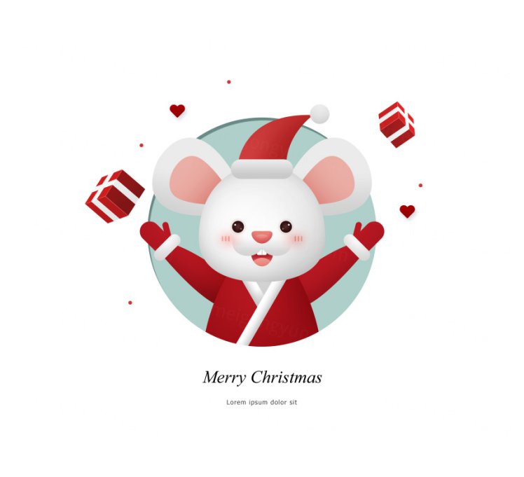 图穷联素材库 » 穿着圣诞衣服的卡通可爱风格鼠年海报模板